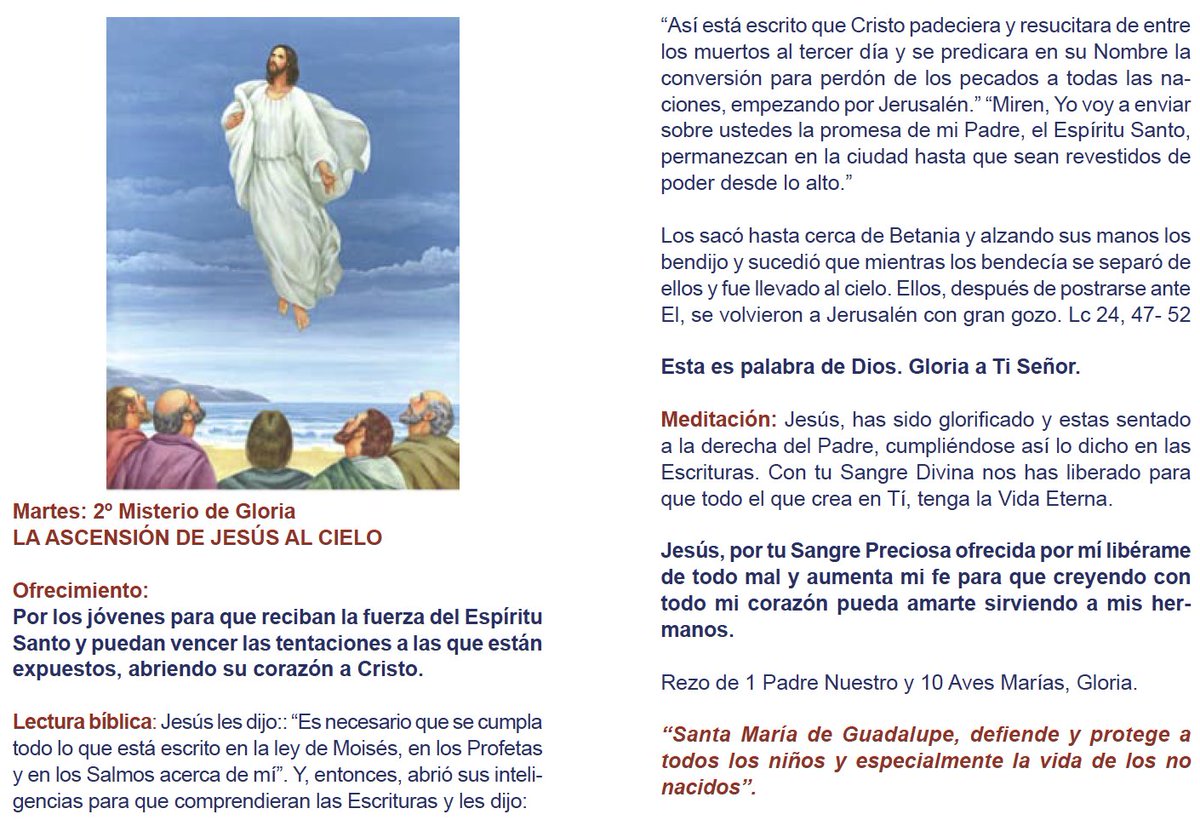 2o Misterio: La Asención de Jesús al Cielo: Por los adolescentes, los jóvenes y por las peticiones de todos ustedes: